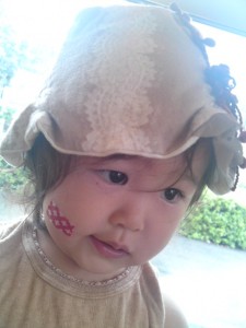 ほっぺにシールべたべた。 最近のお気に入りの様です。 ☆・・・・おまけのコラム・・・・☆・・・・・・・★・・・・・・・・・・・・・・・☆・・・・・・・・・・・・★ 今日は夏の連休の真ん中。 朝からのお掃除中、入り口ドアを全開にするのですが。 最近は、とても気持ち良い風が店内に入ってきます。 空気も匂いも時間もとどまることなく、水のように流れのあるお店を心がけていますので、 良い風に包まれて、地球から見守ってもらっているようで有難く感じます。 皆さまも素敵な夏日をお過ごしくださいませ☆★☆
