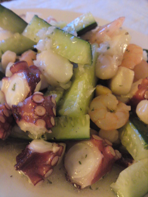 福岡へ行った日は、月曜日お店が終わって、片付け&準備を済ませてから。 当然、到着は夕暮れ~夜にかけて。 お腹ぺこぺこ・疲れもピークで向かった私達を迎えてくれたのは・・・☆ 姉の素敵な手料理たち!!!感激しつつも夢中でいただきましたー!!!・・・・・・・・・・・・・・・・・ ○魚介の冷製ハーブ仕立て