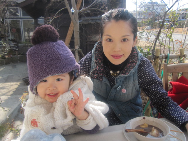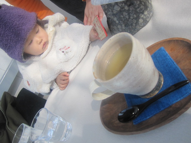 風は冷たいものの日差しがポカポカしていましたのでお外のベンチでcafeタイム。 ★温かい柚子茶