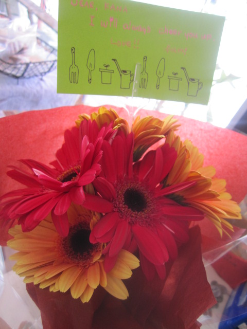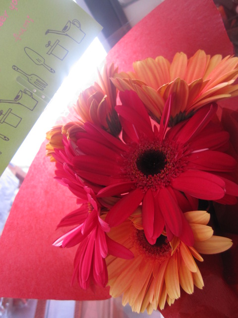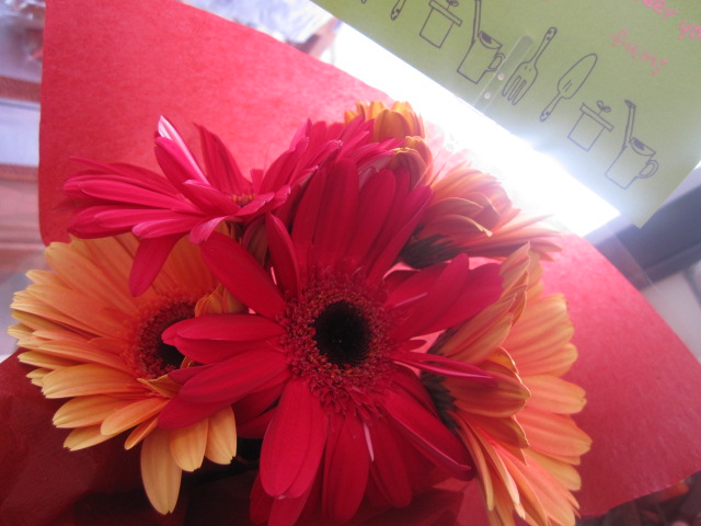 今日は、仲良し心友:ふーちゃんがご来店☆ そーしーてー。 こんなに嬉しいサプライズ! 母の日だからーって。 私の大好きなガーベラ。 テンションあがるビタミンカラー!!! ううー嬉しすぎる。 私なんかよりとっても忙しくとっても大変な彼女から、 いつも沢山のパワーを貰っています。 いつも逢いたいタイミングでありがと!!!